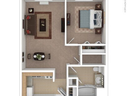 The apartments are equipped with A/C, refrigerator, stove, garbage disposal and emergency pull stations /located in the bedroom and bathroom. There are two walk-in closets, a linen closet, and a pantry in the apartments. There is a laundry facility, exercise, and community room on site.
